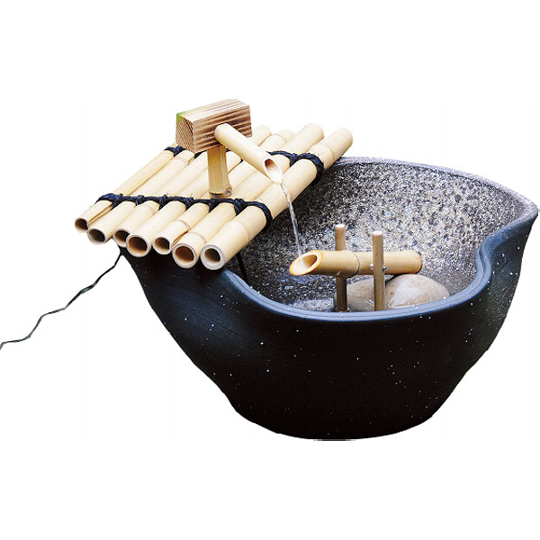 信楽焼のししおどし。 循環式モーターで水を循環し、水の流れる音とと竹が石と触れ合う音が、心を癒す逸品。