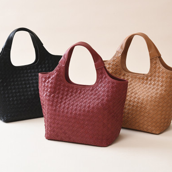 良品工房 日本製牛革 編込みバッグ レッド