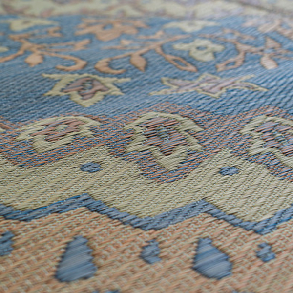 メダリオン柄の国産い草カーペットです。裏に不織布がついていますのでフローリングでもご使用いただけます。