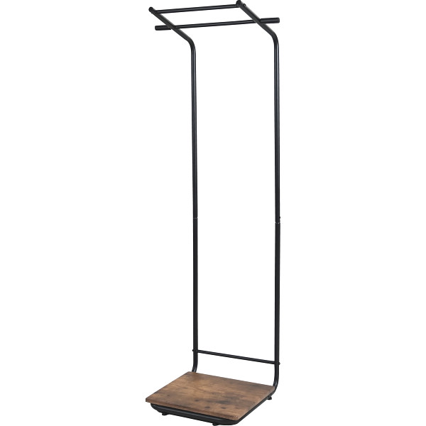 衣類や帽子、ポーチなどを2本のバーでスッキリ収納。使い込まれたかのような木目調棚板がおしゃれ。下棚にはバッグや小物等が置けるので便利です。ガタツキを防止するアジャスター付き。