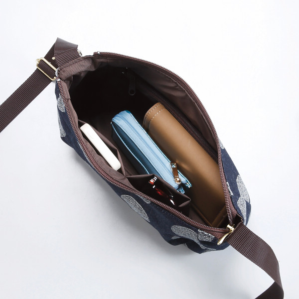 内容:内側=ファスナーポケット×1、オープンポケット×2肩紐着脱不可、長さ調節可開閉=ファスナー式