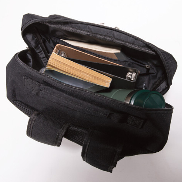 内容:前面=ファスナーポケット(内1つにオープンポケット×2、メッシュポケット×2)×2・内側=ベルクロ付PCポケット×1、ファスナーポケット×1開閉=ファスナー式