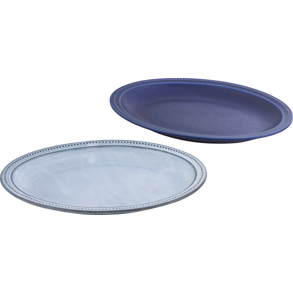 深みのあるブルーと粉引の白が映える楕円のプレート。メインディッシュを盛り付けるのに最適です。