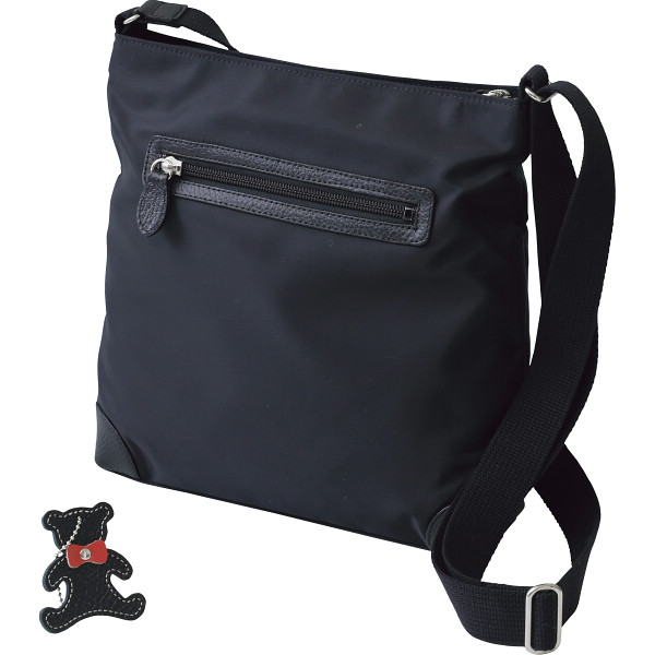 日本製の軽くて使いやすいナイロンショルダー、カワイイクマのストラップが付いています。