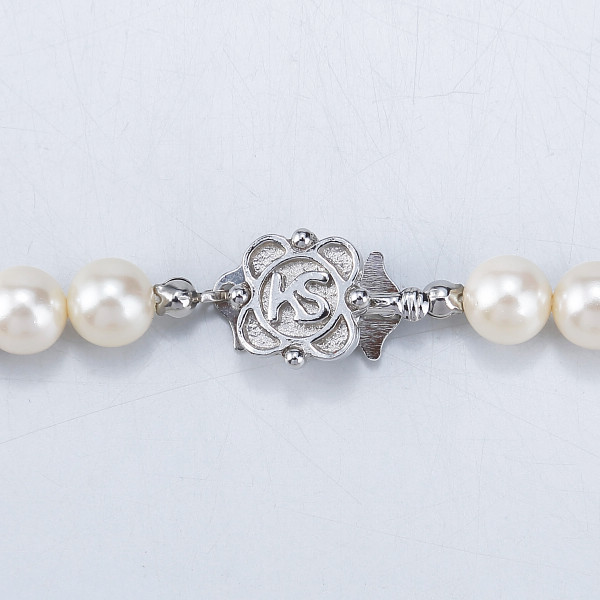 内容:●ネックレス=貝パール(人工真珠)、真鍮(銀色メッキ)・イヤリング=貝パール(人工真珠)、真鍮(銀色メッキ)●現品(ネックレス)全長約42cm、約8mm珠、差込式留め具・(イヤリング)約8mm珠、ネジばね式留め具