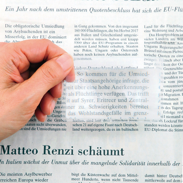 読書に最適!メガネのようにかけて使用する倍率1.6倍の拡大鏡と、手帳や財布に入る薄さのシート状のルーペのセットです。