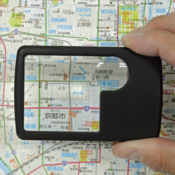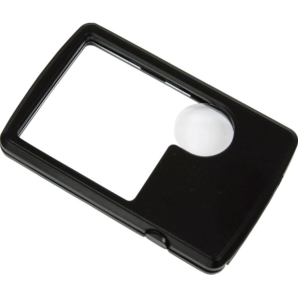●LED1灯点灯のカードタイプで携帯に便利で、ボタンを押すだけでライトが点灯して暗い場所でも観察できます。小玉部分では高倍率の4.5倍で小さなものを拡大して見るときに便利です。