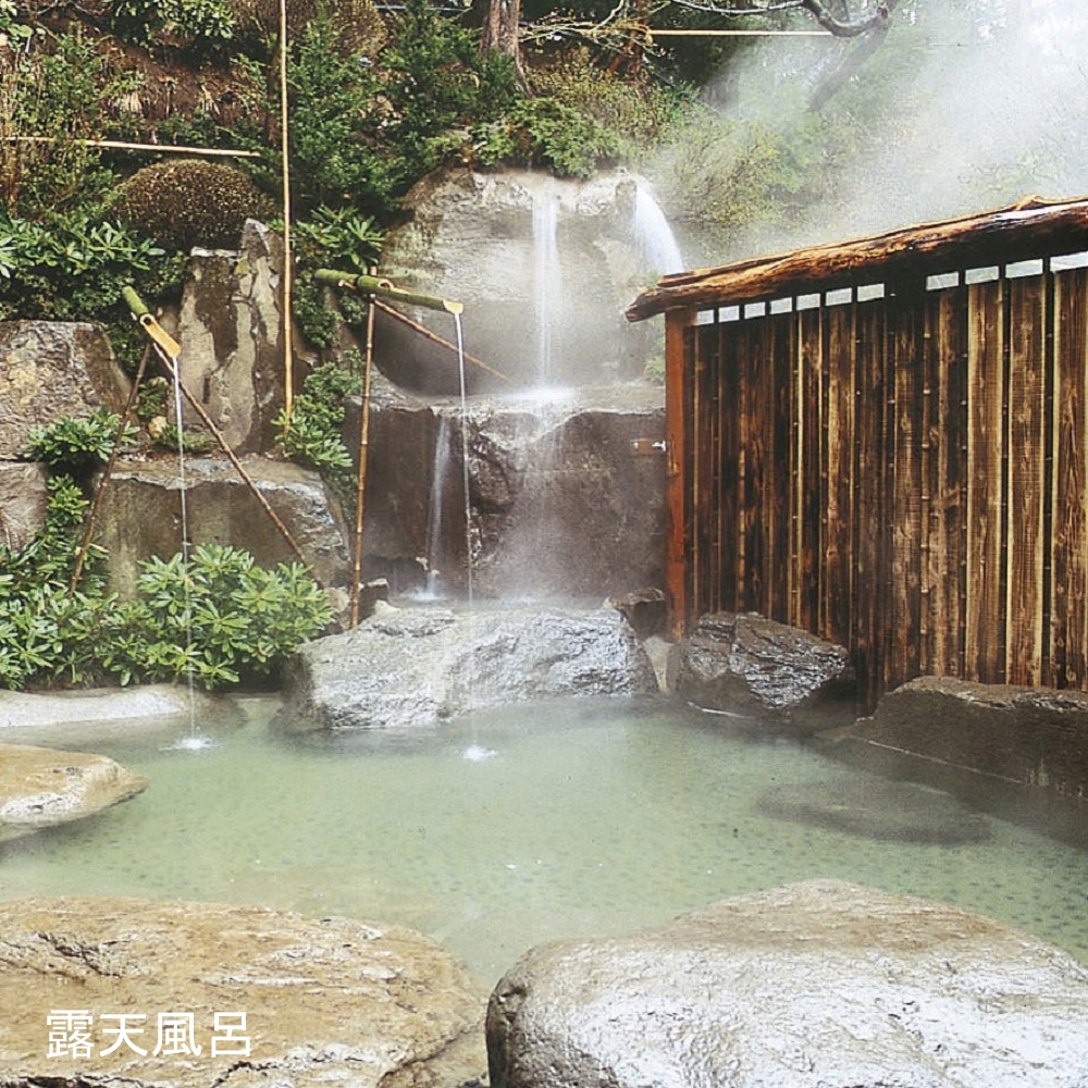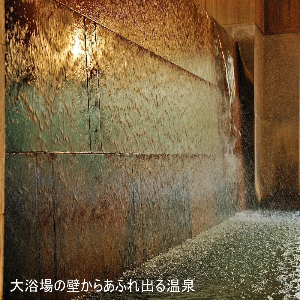 1日1,000トン以上の豊富な湯量がおしげもなく大浴場の壁から流れ出る様子が圧巻。滝のように流れ落ちる源泉を贅沢に。その季節の特徴を先付に表した遊び心溢れるお料理。また来たいと思わせるおもてなしの宿。