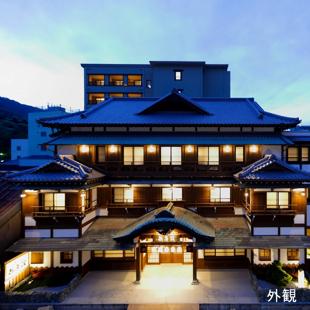 由緒ある老舗旅館「敷島館」が、金刀比羅宮の表参道に復活。歴史的な佇まいを再現した外観からは古き良き“こんぴらさんの風情”が漂います。足湯や貸切風呂など、多彩な湯処で参拝の疲れをじっくりと癒します。